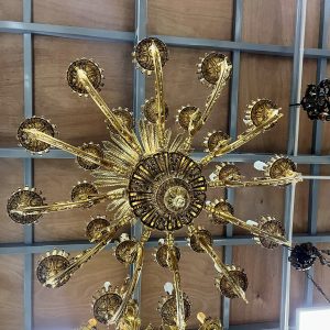 Đèn gồm 12 tay, 2 tầng, 24 bóng. Mỗi tay được cách điệu như một chú công đang xòe đuôi cực kỳ độc đáo.