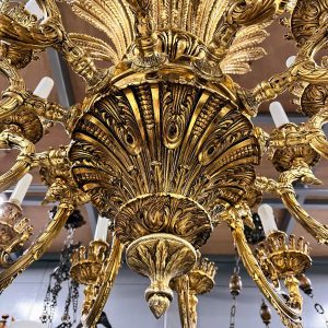 Đèn chùm, xuất xứ Pháp. Đèn bằng đồng đúc, họa tiết cực kỳ sắc nét và tinh xảo.