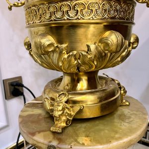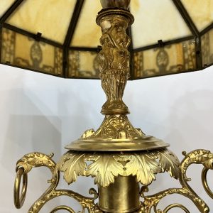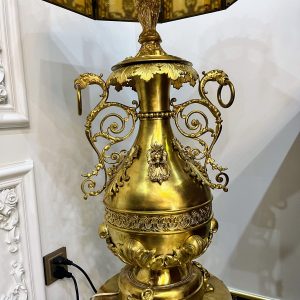 Đèn tiffani, xuất xứ Pháp. Toàn thân đèn bằng đồng với các chi tiết cực kỳ tinh xảo. Đôn đá cẩm thạch kết hợp với chao đá cổ tạo nên một chiếc đèn hoàn hảo.