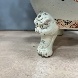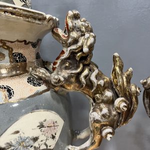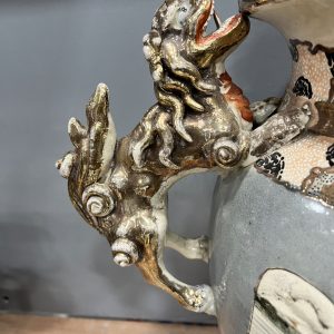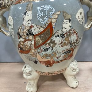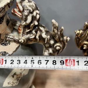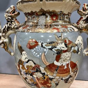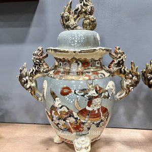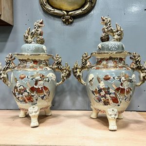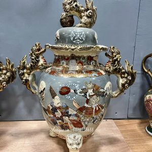 Cặp đỉnh Satsuma, xuất xứ Nhật. Họa tiết được vẽ kết hợp giữa men gốm và vàng rất đẹp, ấn tượng.