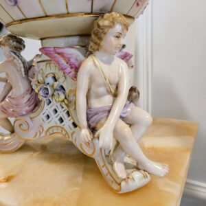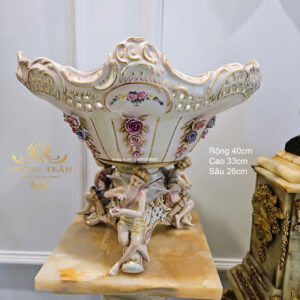 Một chiếc ang, chiếc âu sứ đựng hoa quả hoặc bánh kẹo rất đẹp. Phần chân là tượng 3 thiên thần kết hợp với những bông hoa được làm rất cầu kỳ và tinh xảo phía trên.