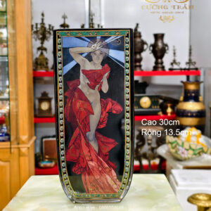 Bình hoa pha lê, với bốn cạnh là bốn bức tranh của danh họa Alphonse Mucha(1860 – 1939) được tái hiện theo phong cách mới trên bình hoa pha lê.