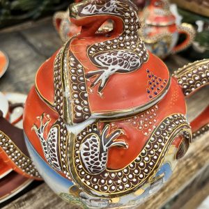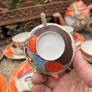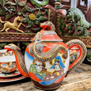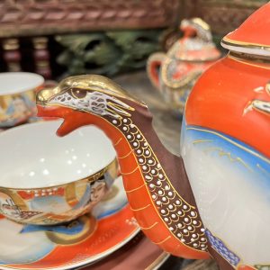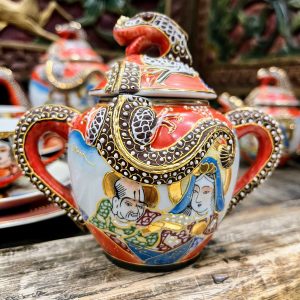 Bộ ấm trà Satsuma, xuất xứ Nhật. Họa tiết rồng trên bình được đắp nổi thủ công cực kỳ đẹp và cầu kỳ.