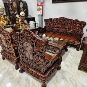 - 01 Ghế đoản dài: Rộng 205cm x Cao 117cm x Sâu 67cm (Chạm Cửu Long uy nghi).