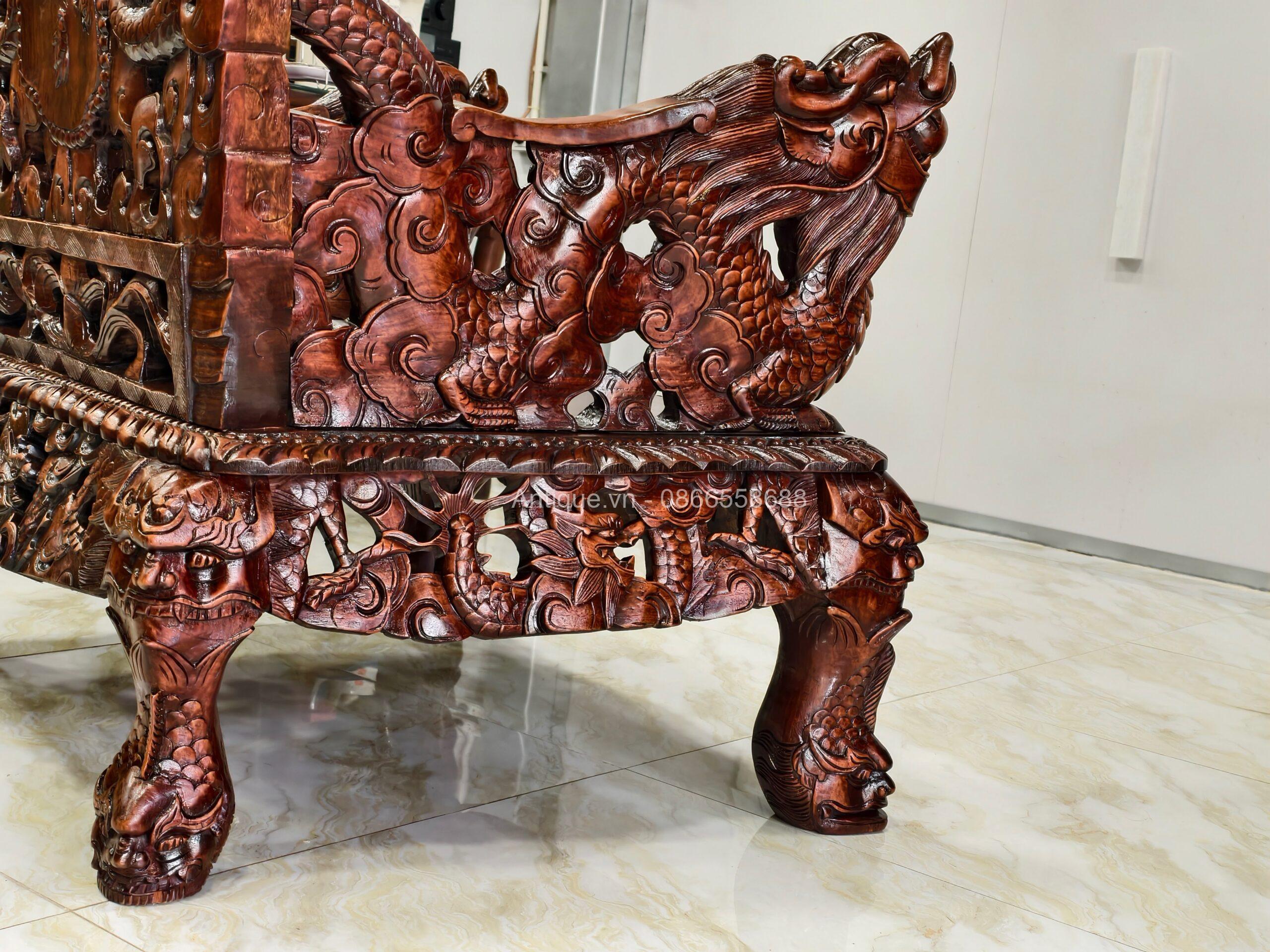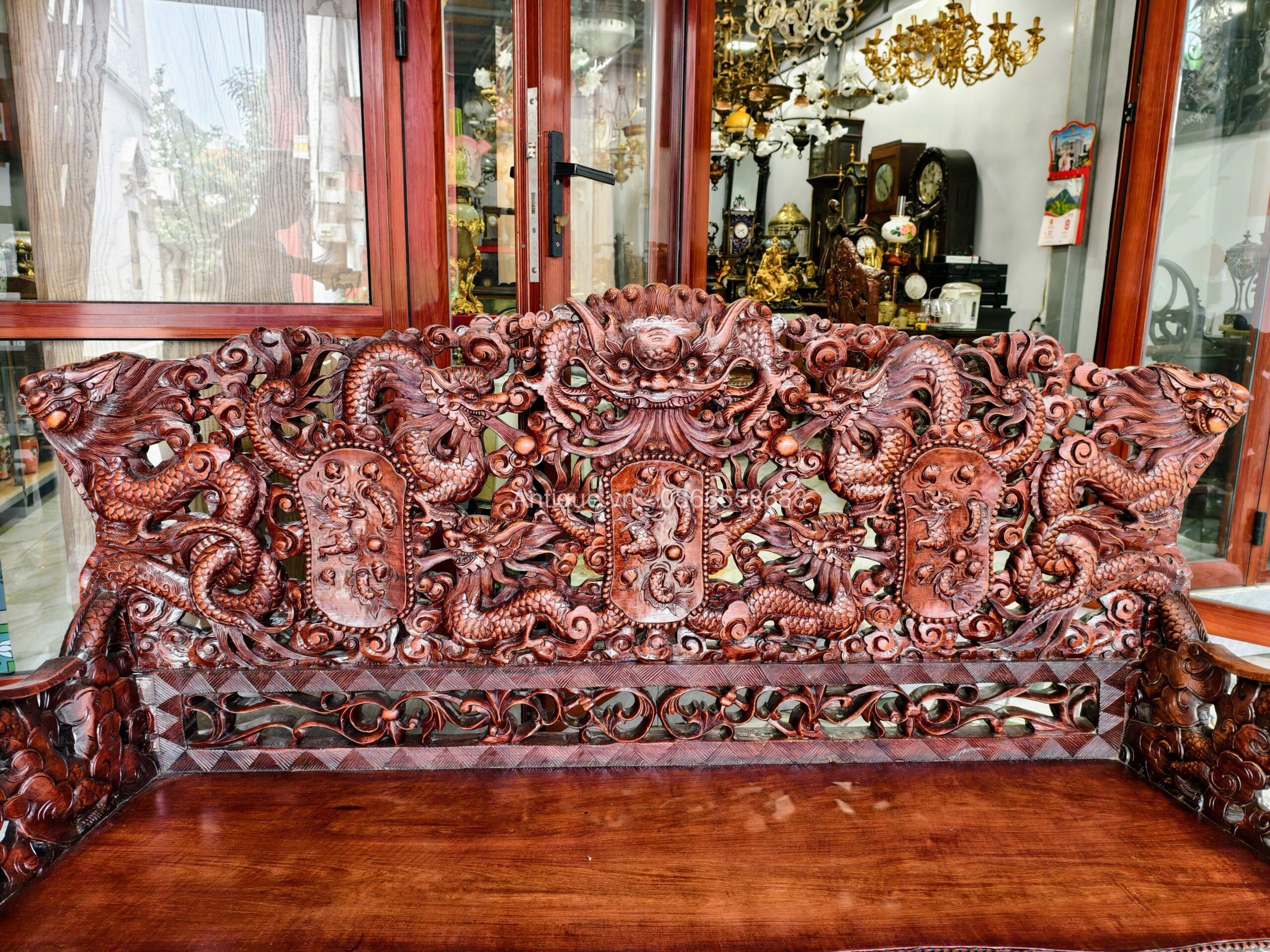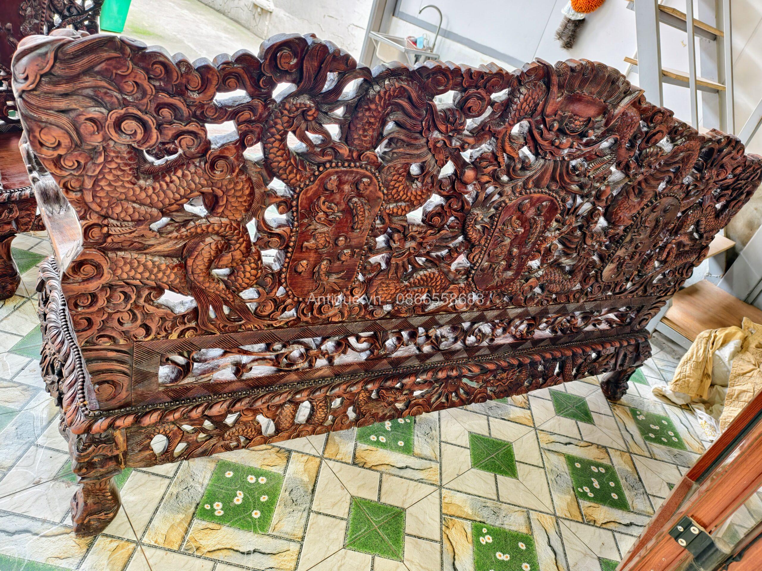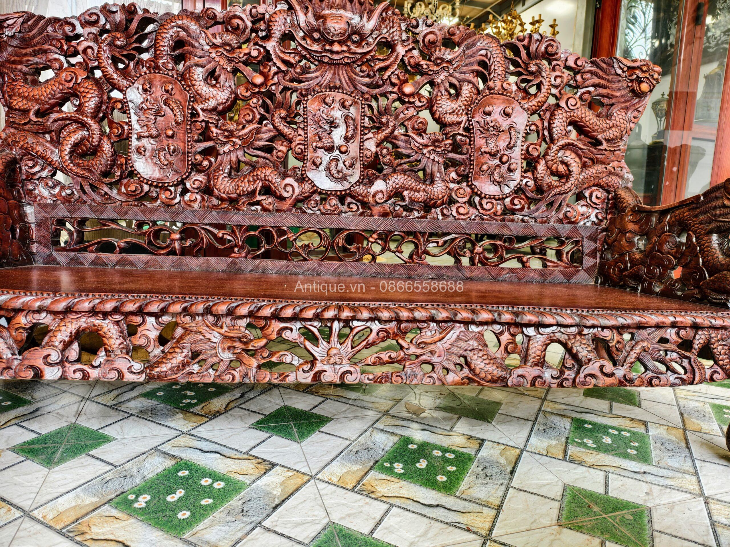 - 01 Ghế đoản dài: Rộng 205cm x Cao 117cm x Sâu 67cm (Chạm Cửu Long uy nghi).