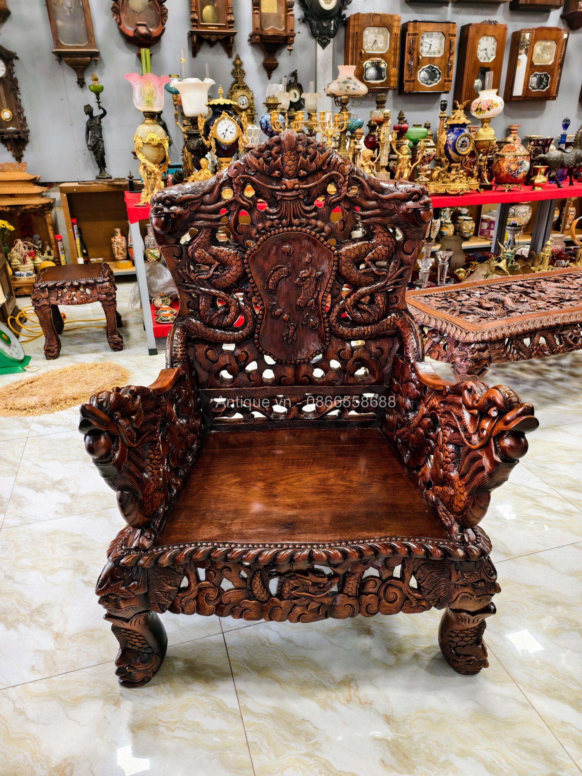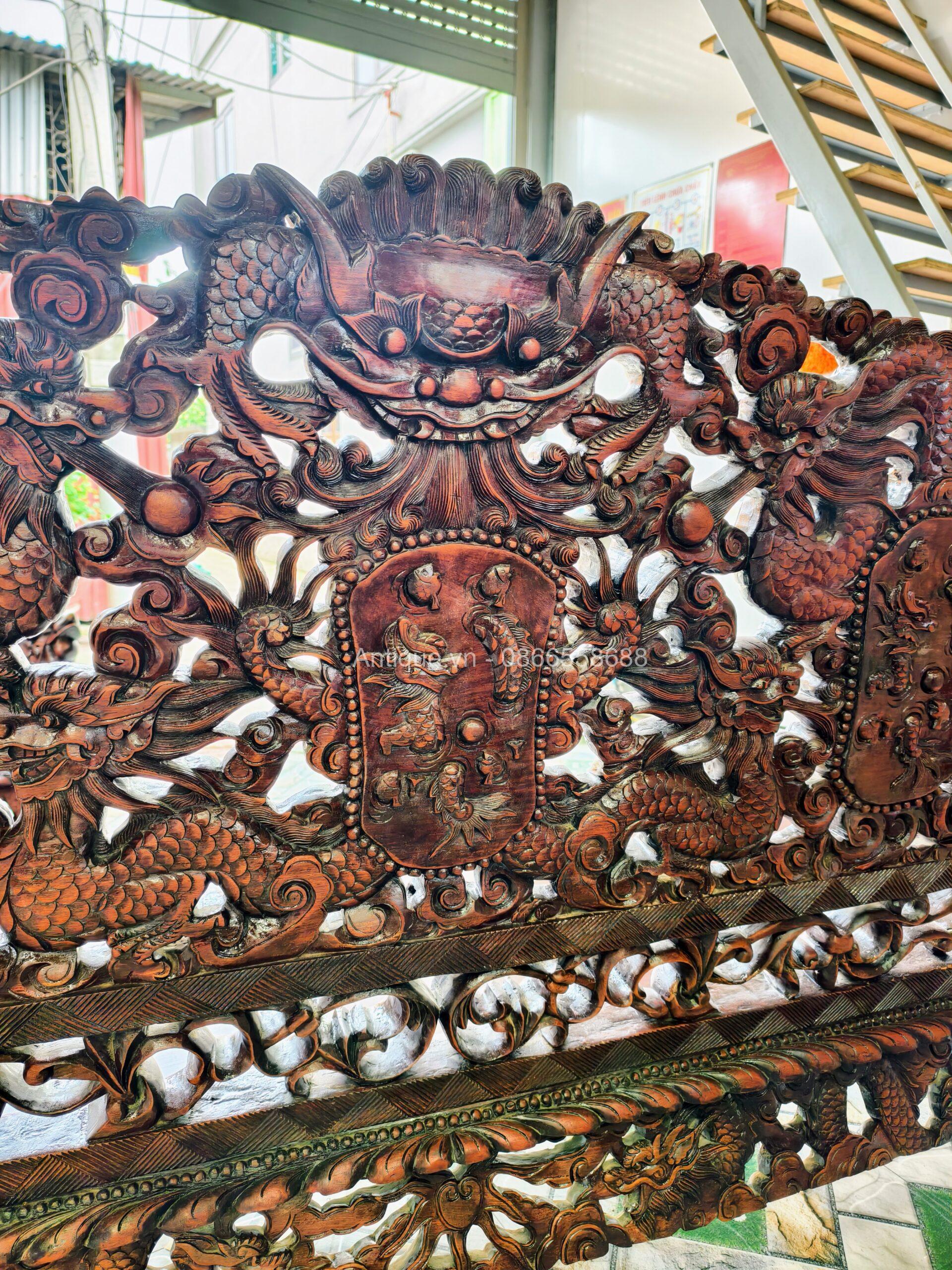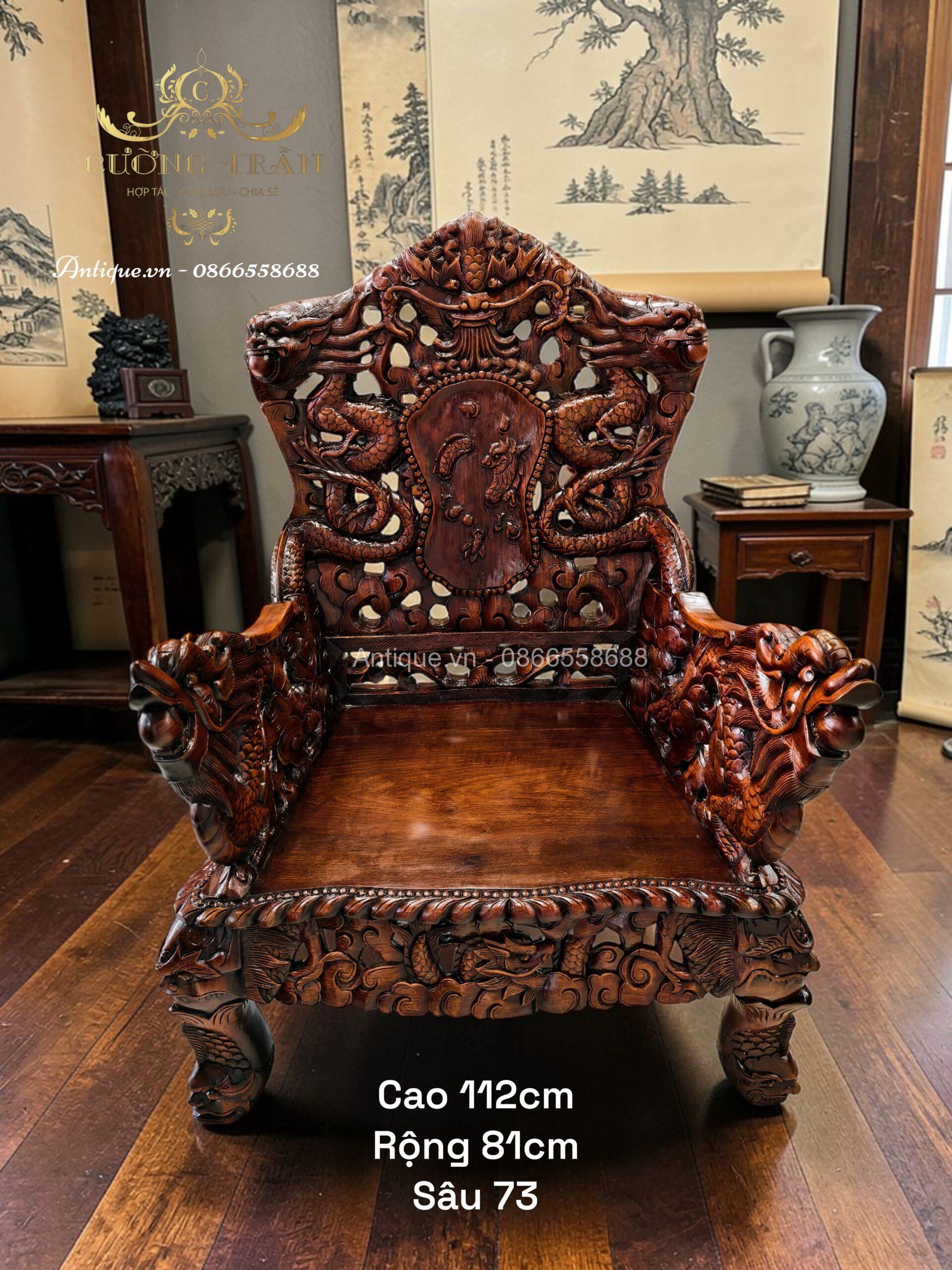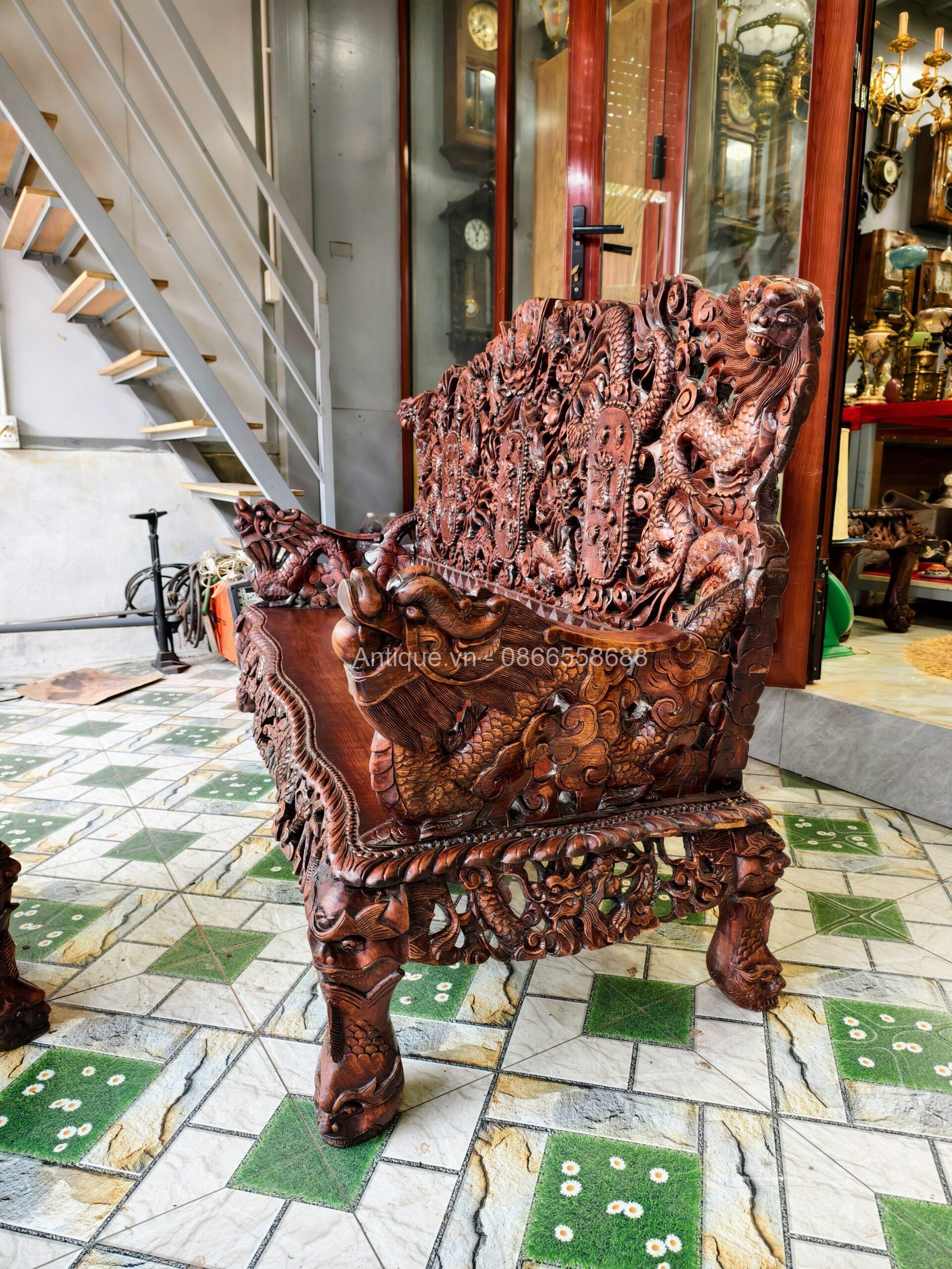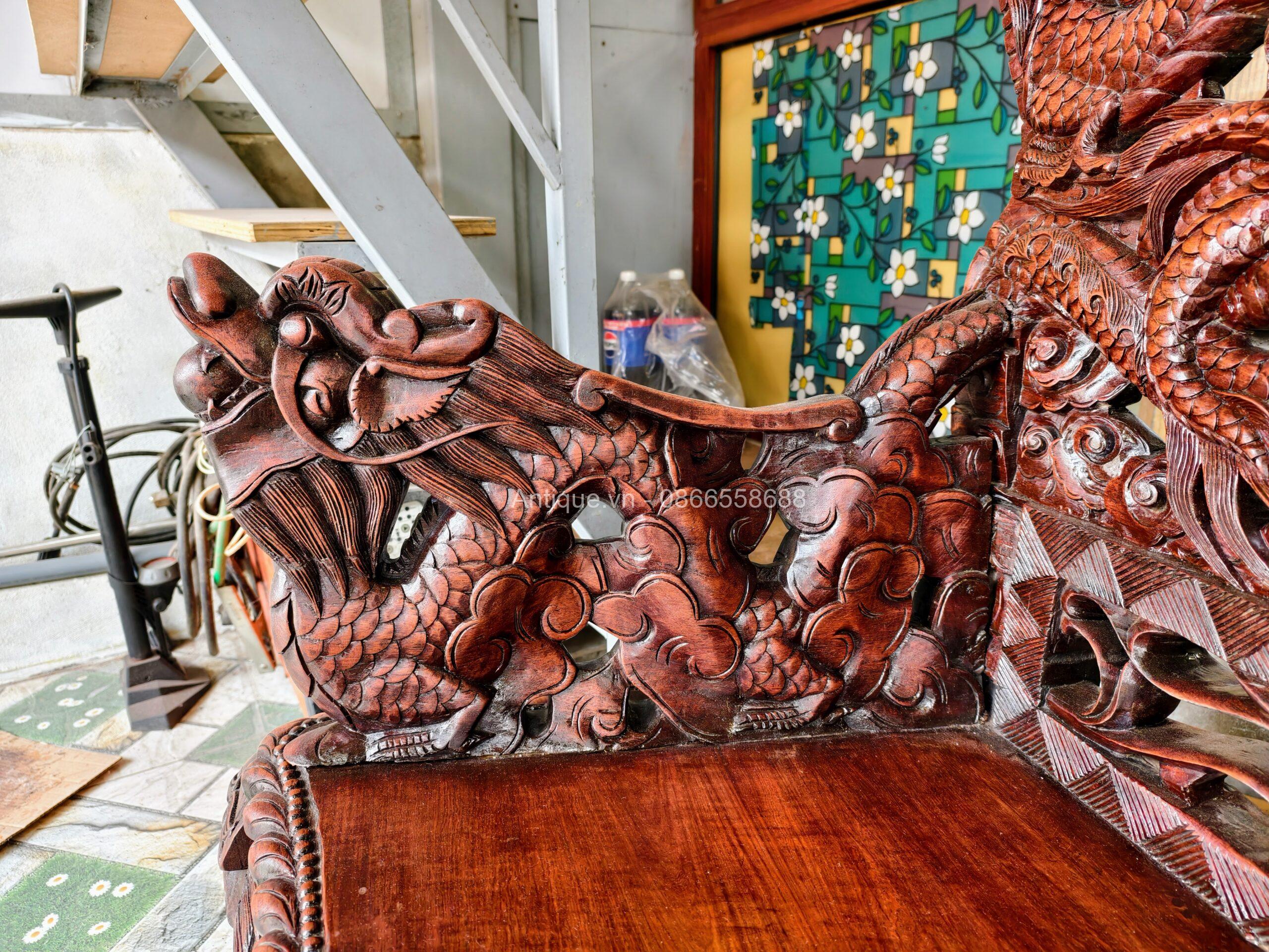 - 01 Ghế đoản dài: Rộng 205cm x Cao 117cm x Sâu 67cm (Chạm Cửu Long uy nghi).