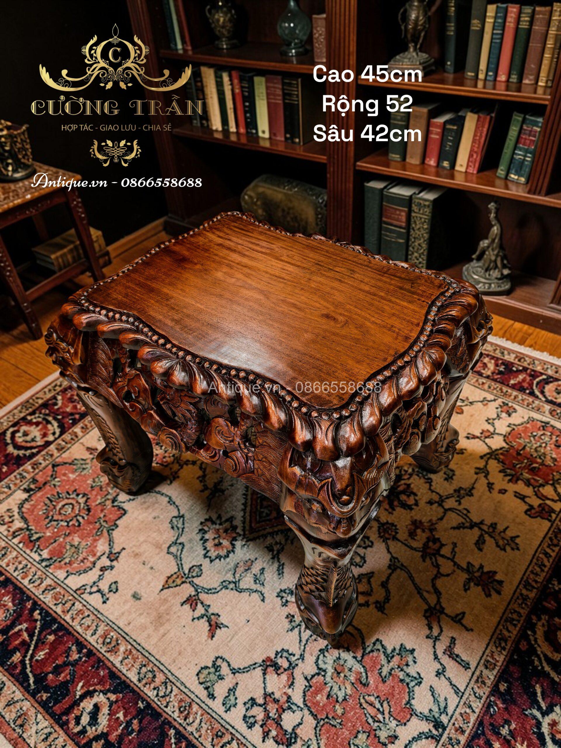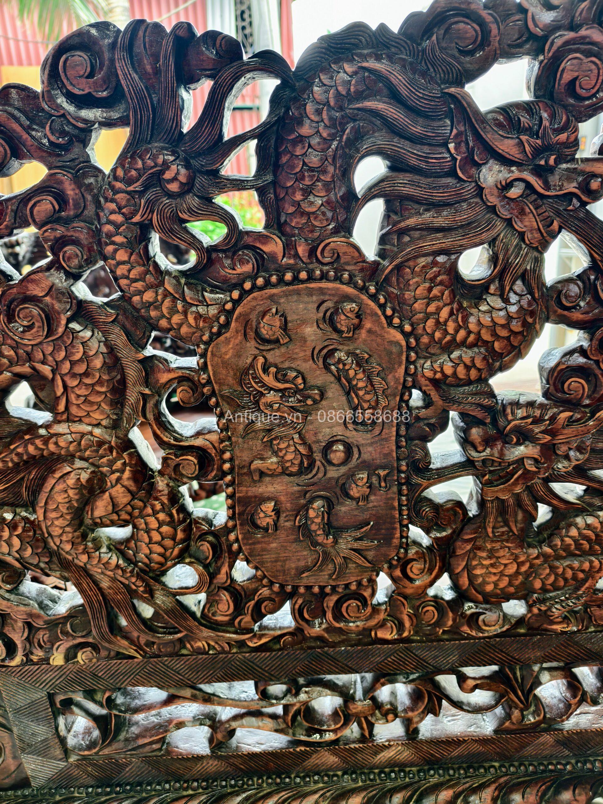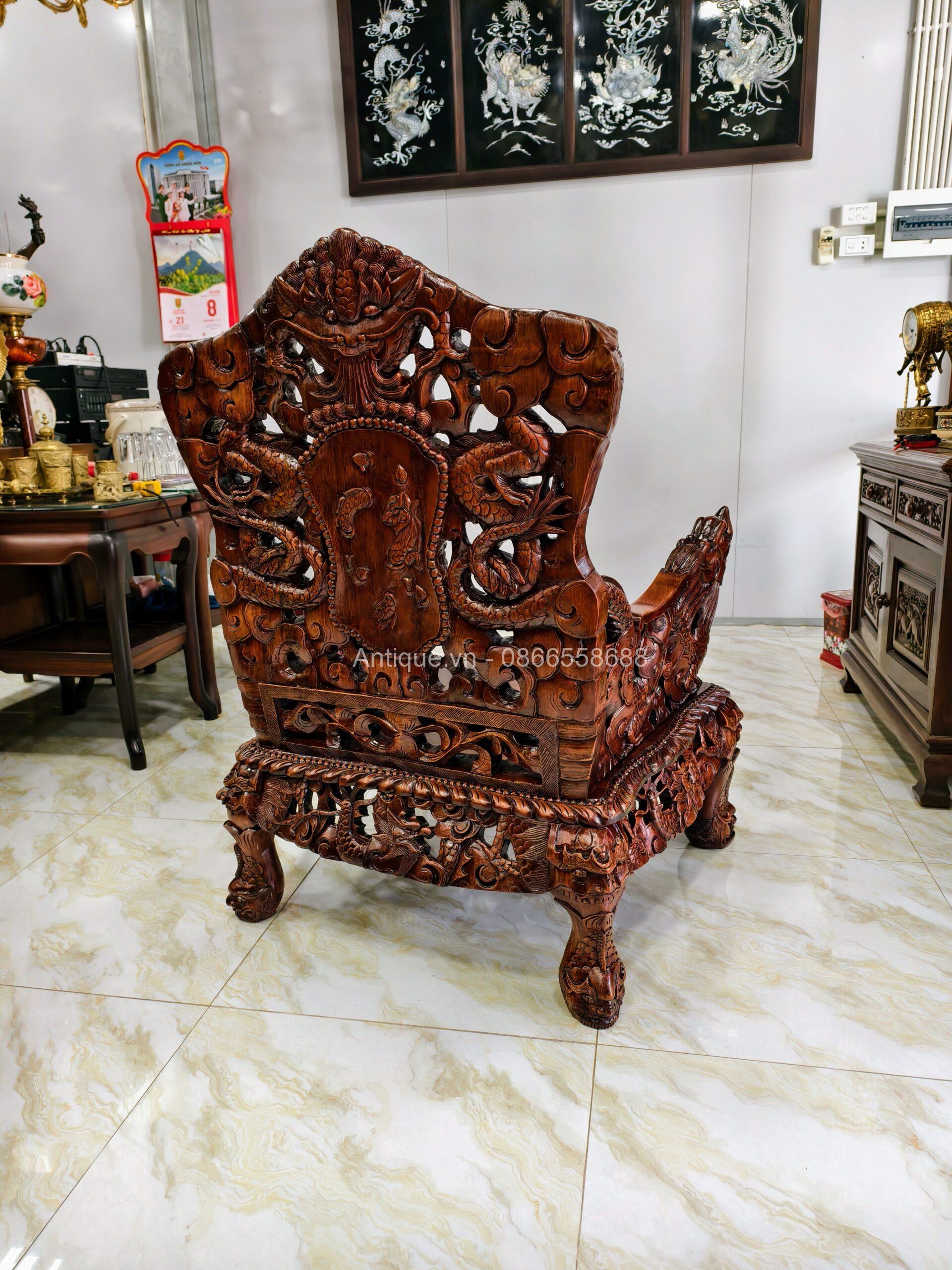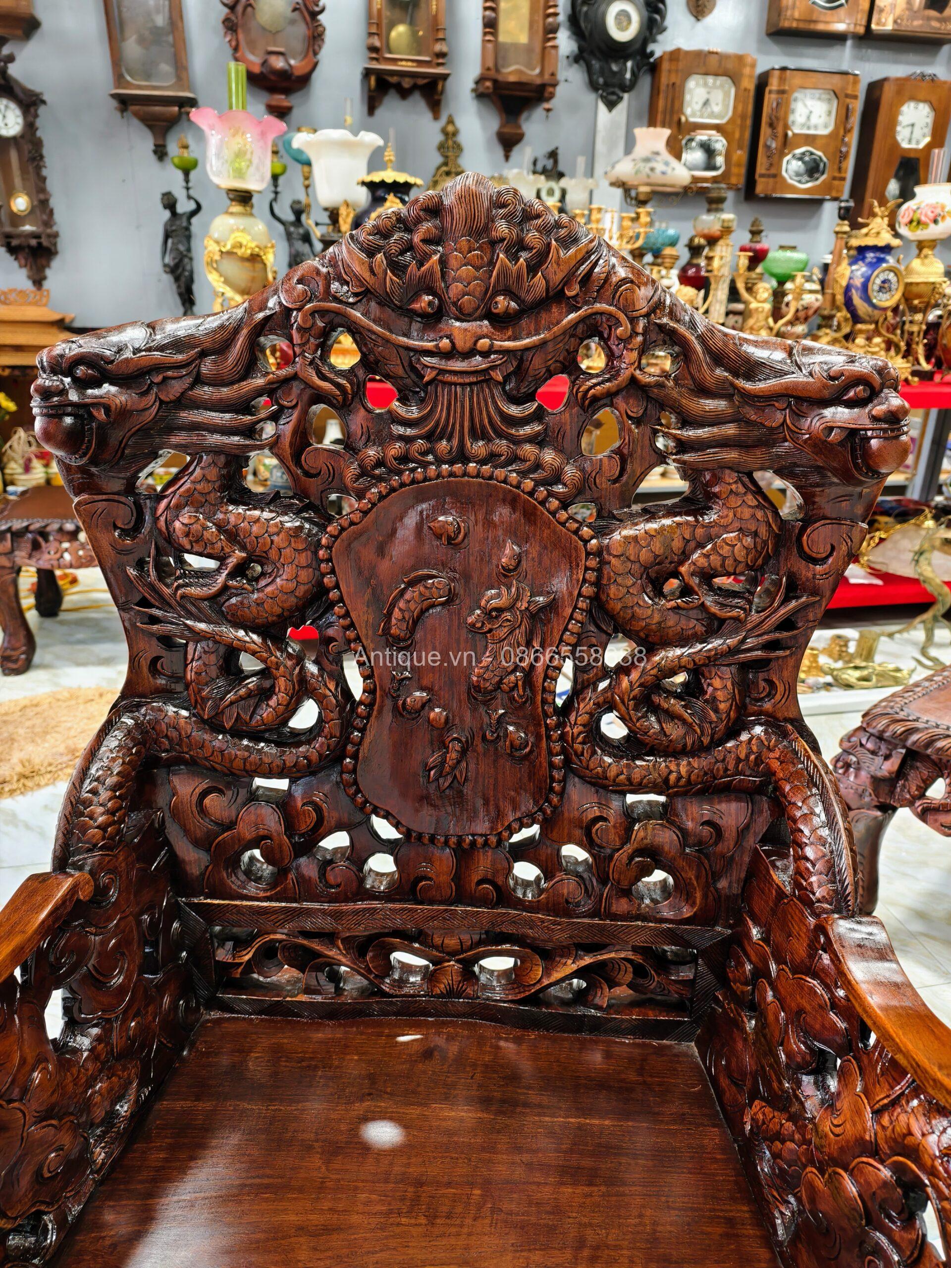 - 01 Ghế đoản dài: Rộng 205cm x Cao 117cm x Sâu 67cm (Chạm Cửu Long uy nghi).