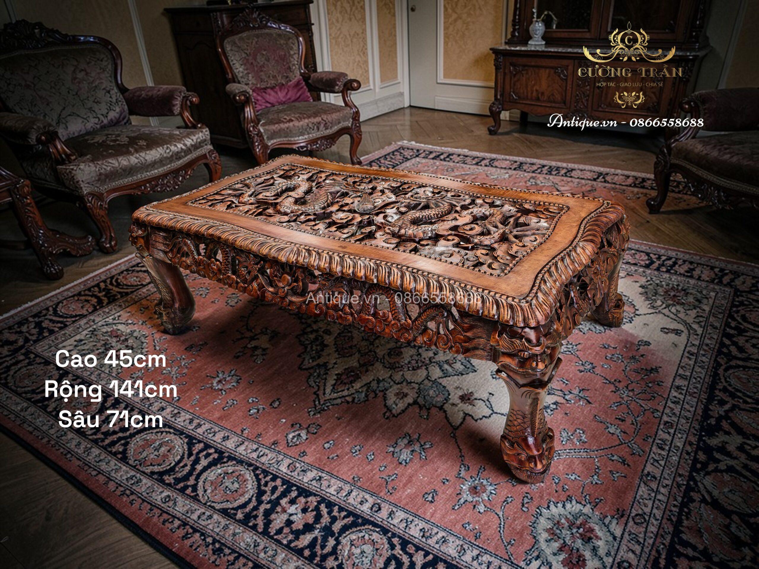 - 01 Bàn lớn: Rộng 141cm x Cao 45cm x Sâu 71cm.(Lưỡng long chầu nguyệt)
