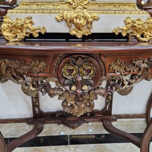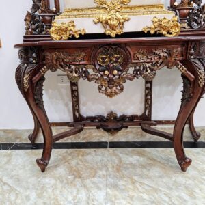 Kích thước: bàn cao 80cm, rộng 135cm, sâu 50cm. Gương 165cm x 135cm.