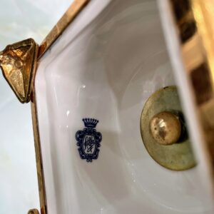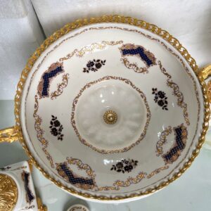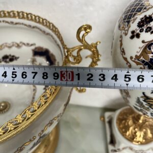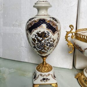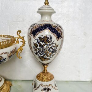 Bộ bình gốm 3 món, xuất xứ Italy, 2 bình và 1 cup ở giữa. Bình sứ, kết hợp các họa tiết kim loại mạ vàng rất đẹp và tinh tế.
