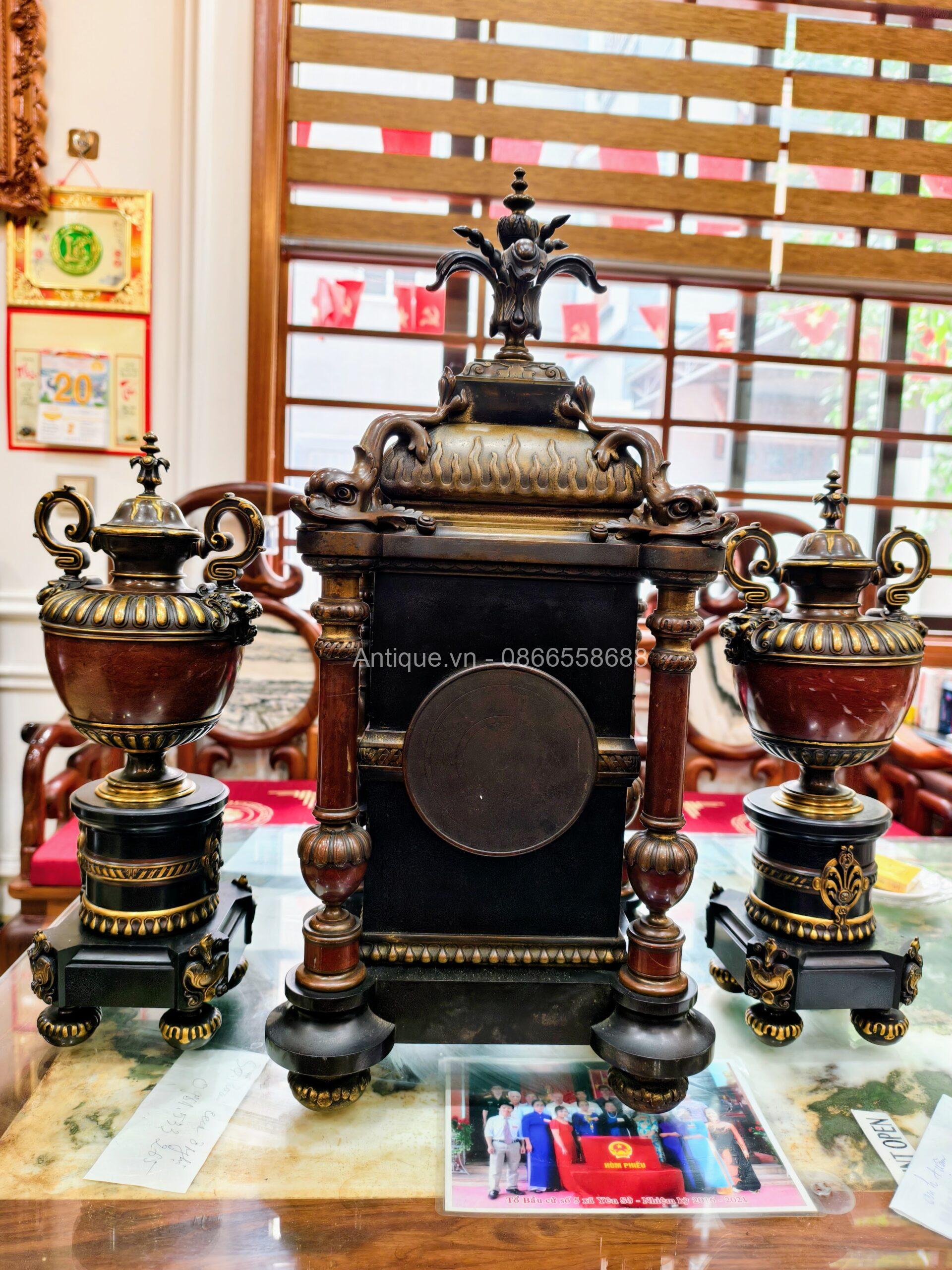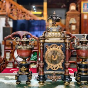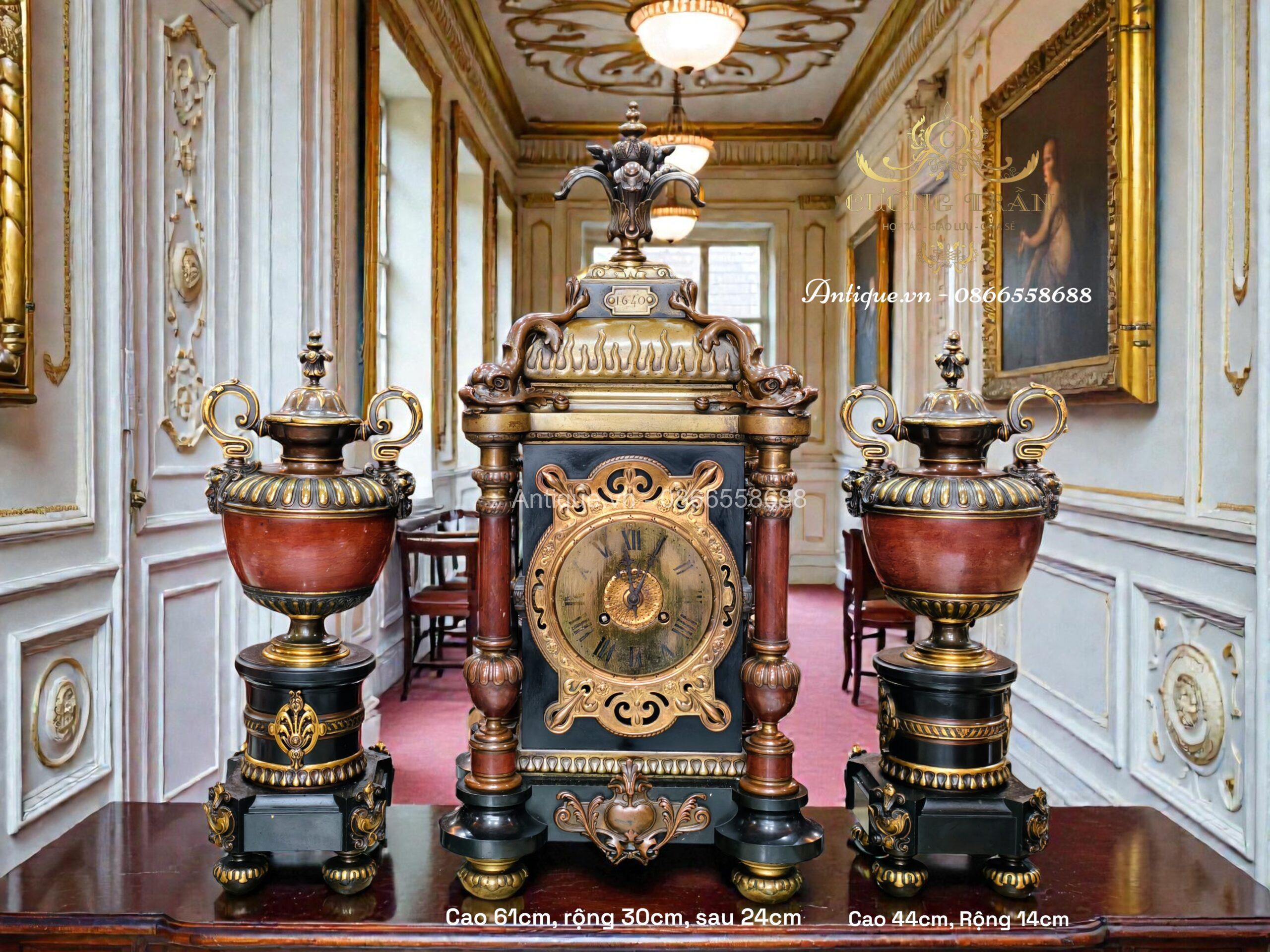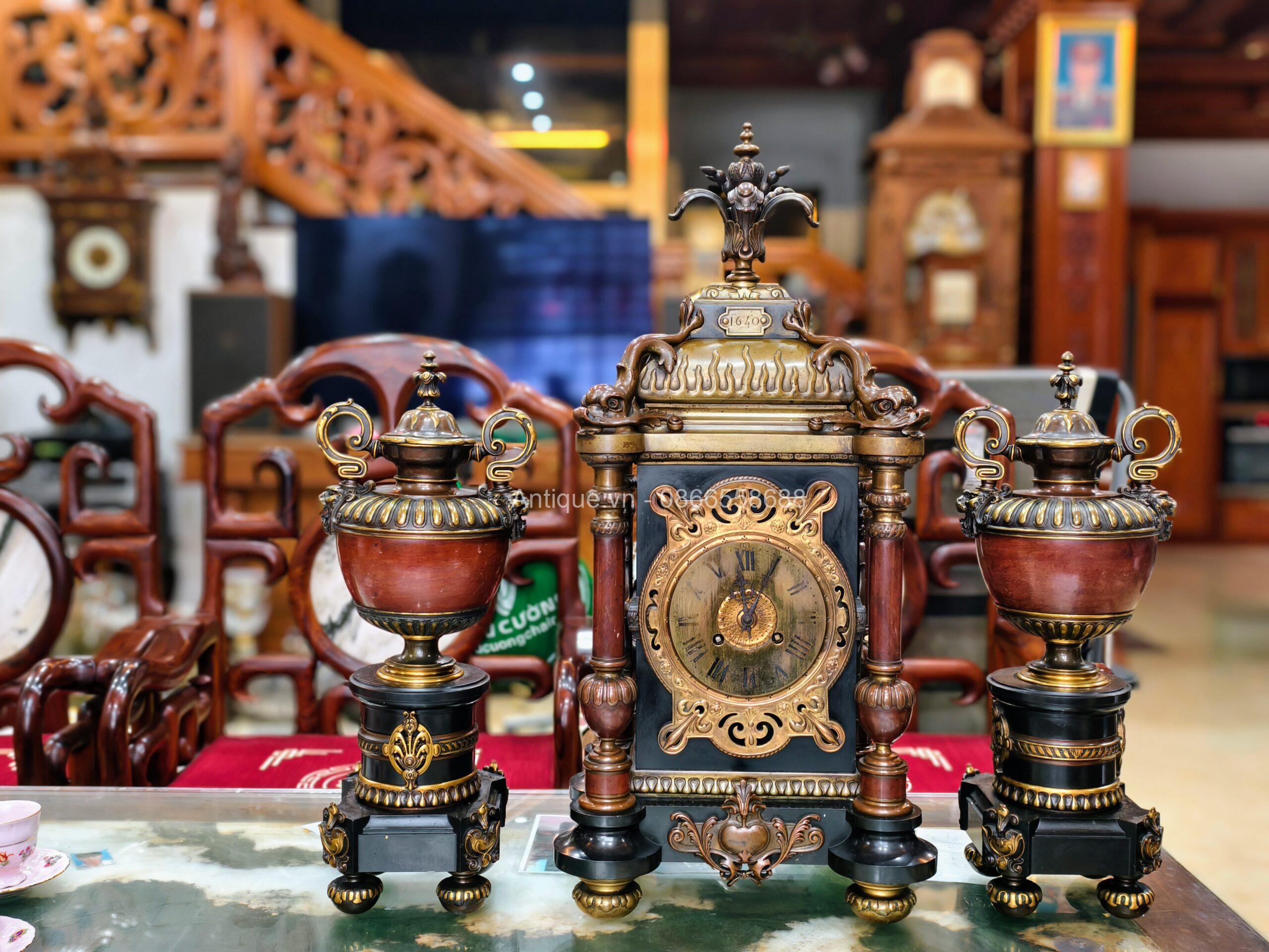Bộ đồng hồ và cặp bình trang trí mang phong cách Baroque Revival (Phục hưng Baroque) của thương hiệu danh tiếng Le Roy & Fils.