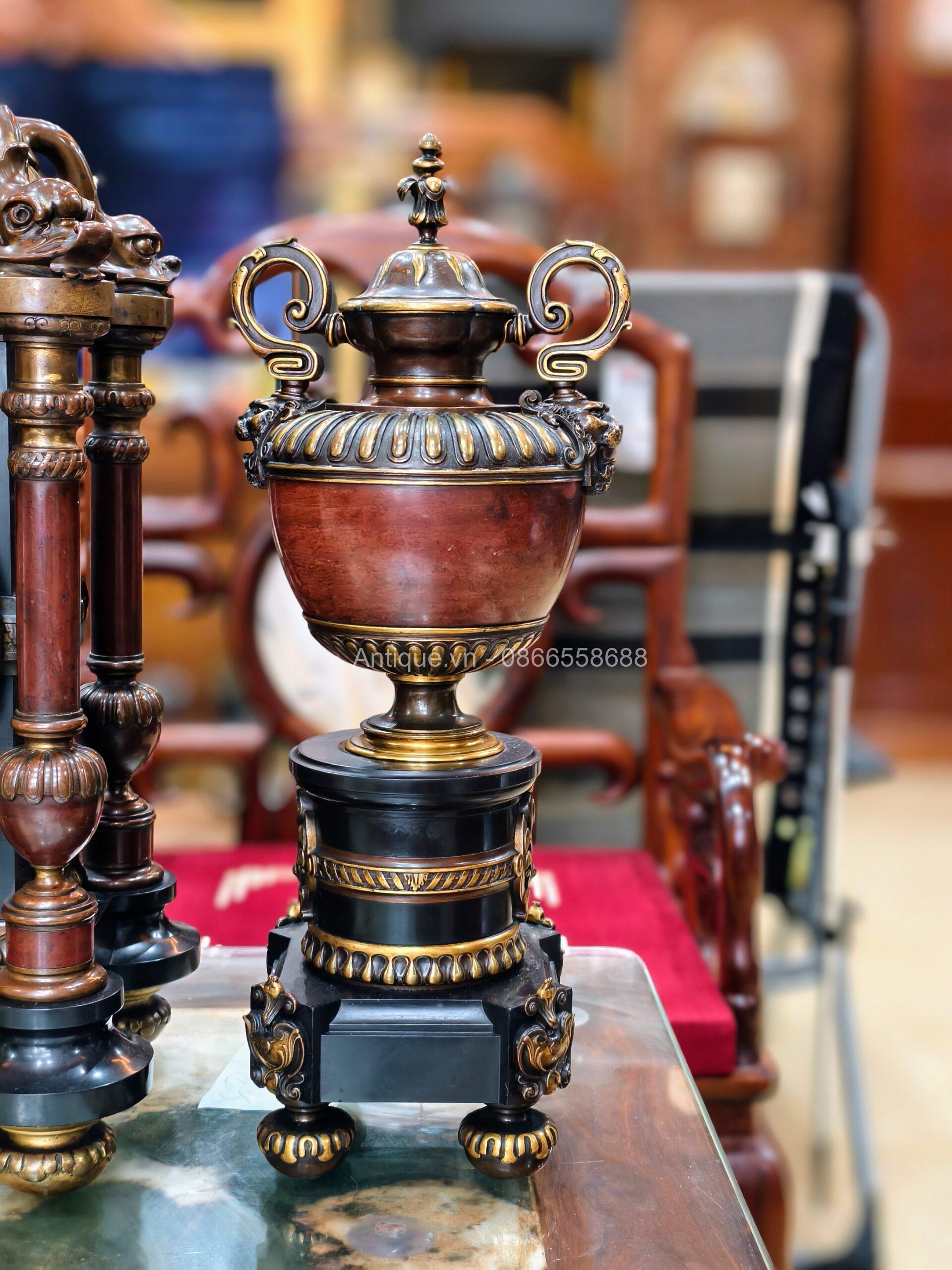 • Chất liệu: Thường được làm từ đồng, một số chi tiết mạ vàng kết hợp đá đen và đá đỏ.