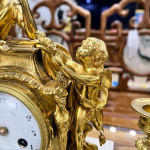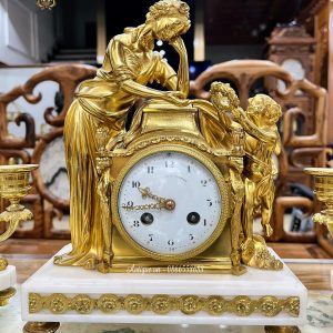 Bộ đồng hồ chân nến nhỏ xinh nhưng rất đẹp, các chi tiết đồng lacke vàng được làm cực kỳ tỉ mỉ sắc nét và tinh tế.