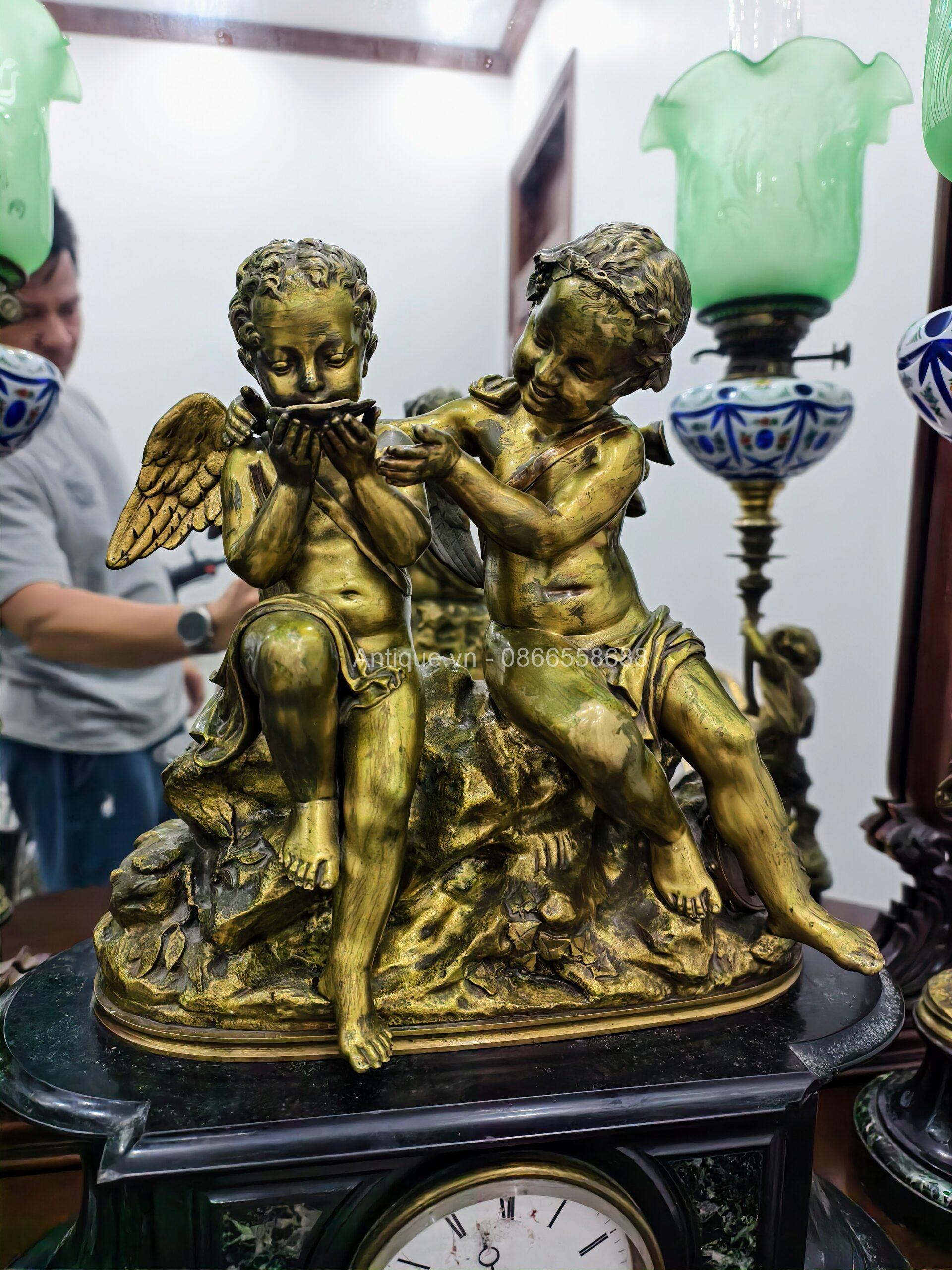 🕊️ “BẢN GIAO HƯỞNG THỜI GIAN” – BỘ ĐỒNG HỒ TƯỢNG ĐỒNG THIÊN THẦN 🕊️