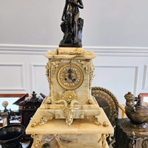 Bộ đồng hồ tượng, bao gồm, đôn đá cẩm thạch, đồng hồ đá cẩm thạch và tượng đồng.