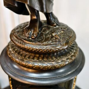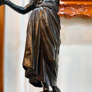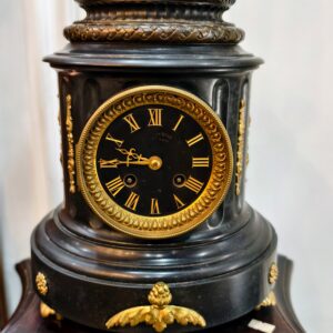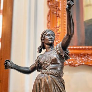 Bộ đồng hồ tượng, đồng hồ với phần thân bằng đá đỏ. Tượng đồng cô gái cầm suốt chỉ, tôn vinh công việc lao động của người phụ nữ. Một tác phẩm của nhà điêu khắc người Pháp Charles Degeorge (1837 – 1888).