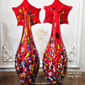 Cặp bình tủy tinh đa sắc Murano(Italy). Phần thân bình với nhiều hình đa sắc được làm nổi lên rất đẹp và độc đáo.