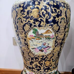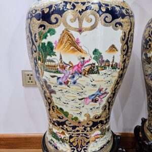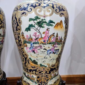 Cặp binh sứ,hàng Trung Quốc xuất châu âu xưa. Họa tiết hoa lá vẽ vàng kết hợp với bức tranh đi săn rất đẹp.