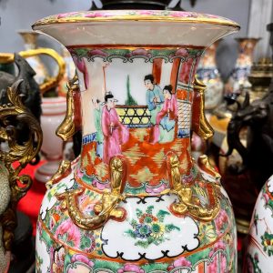 Cặp bình sứ, xuất xứ Trung Quốc xuất châu âu xưa. Họa tiết trên bình được vẽ vàng cực kỳ tinh tế tỉ mỉ.
