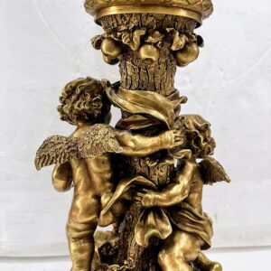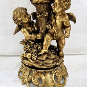 Chân đèn dầu, xuất xứ Pháp, thân đèn kết hợp giữa đá cẩm thạch trắng đồng đúc với những chi tiết cặp thiên thần cực kỳ đẹp và sắc nét.