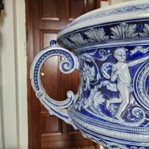 Chậu hoa xuất xứ Pháp. Một bộ bao gồm một chậu hoa và một đôn sứ rất đẹp, các họa tiết được đắp nổi cực kỳ đẹp và tinh xảo.