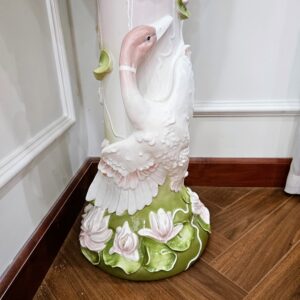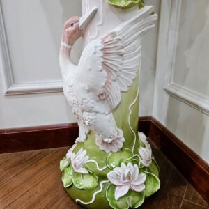 Chậu hoa xuất xứ Italy. Một bộ bao gồm một chậu hoa và một đôn sứ rất đẹp. Với họa tiết hoa sen là chủ đạo, điểm nhấn chính giữa là chú thiên nga đang tung cánh.