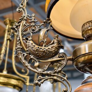 Đèn 3 dây, xuất xứ Pháp. Thân đèn kết hợp giữa bầu gỗ và họa tiết thuyền buồm bằng đồng tinh xảo. Với ý nghĩa may mắn, thuận buồm xuôi gió trong mọi việc.