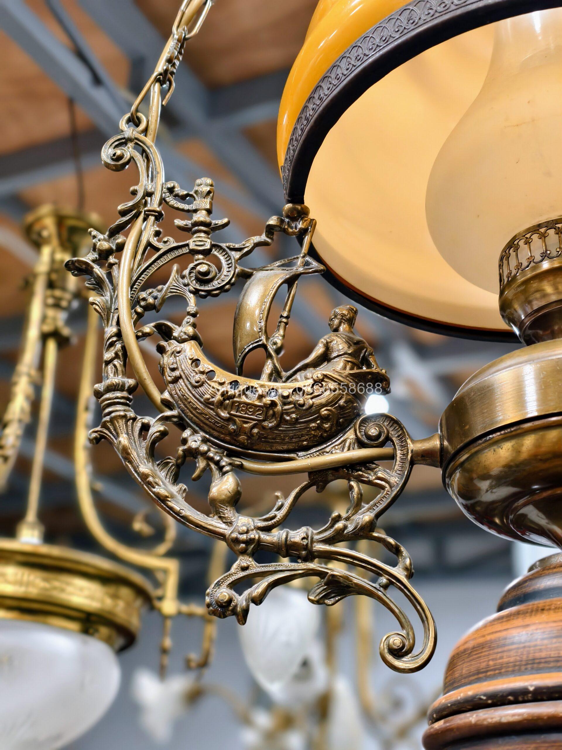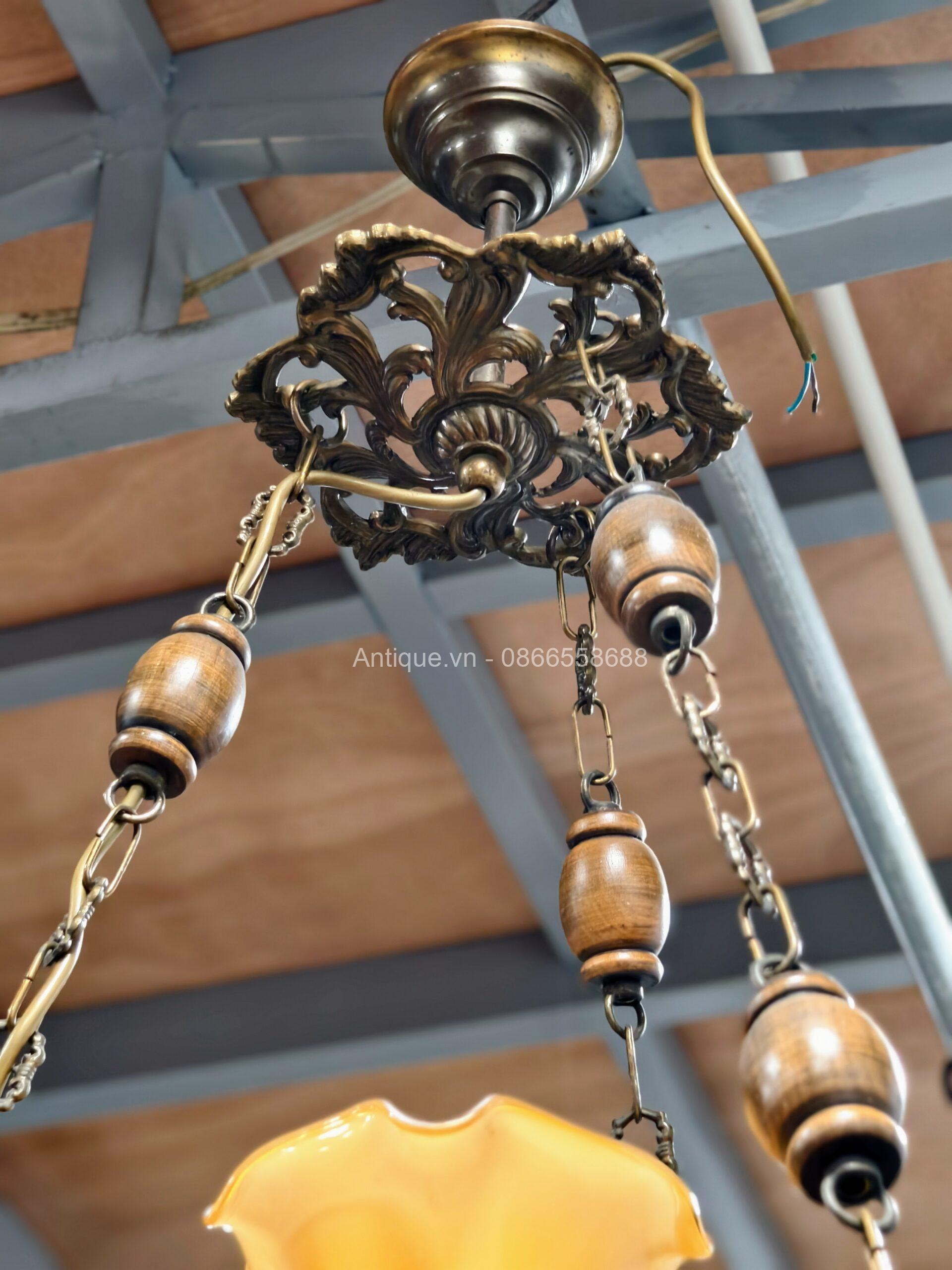Đèn 3 dây, xuất xứ Pháp. Thân đèn kết hợp giữa bầu gỗ và họa tiết thuyền buồm bằng đồng tinh xảo. Với ý nghĩa may mắn, thuận buồm xuôi gió trong mọi việc.