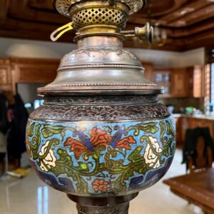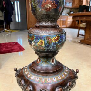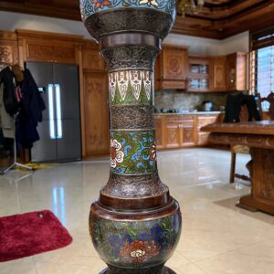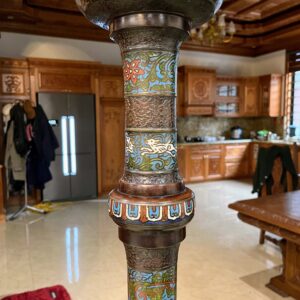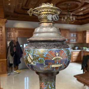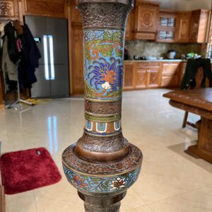 Đèn cây pháp lam, xuất xứ Nhật. Toàn thân bằng đồng, họa tiết con vật hoa lá được tráng men cực kỳ đẹp và sắc nét.