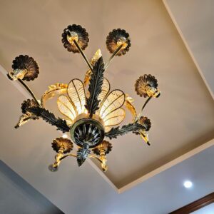 Đèn chùm, toàn bộ đèn bằng đồn đúc, gồm 6 ngọn xung quanh kết hợp với 1 đèn lớn chính giữa rất đẹp.