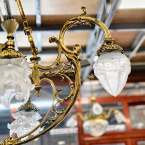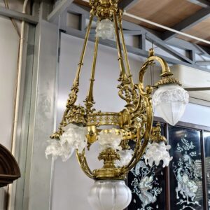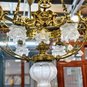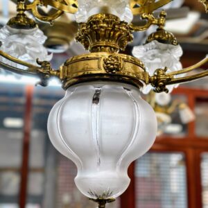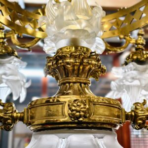 Đèn chùm Pháp, toàn thân bằng đồng đúc, với các chi tiết cực kỳ sắc nét. Đèn 9 bóng. Chao chính đèn cực kỳ đẹp và dày dặn.