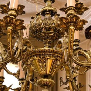 Đèn chùm xuất xứ Pháp, toàn thân bằng đồng đúc, các chi tiết cực kỳ đẹp và sắc nét.