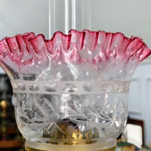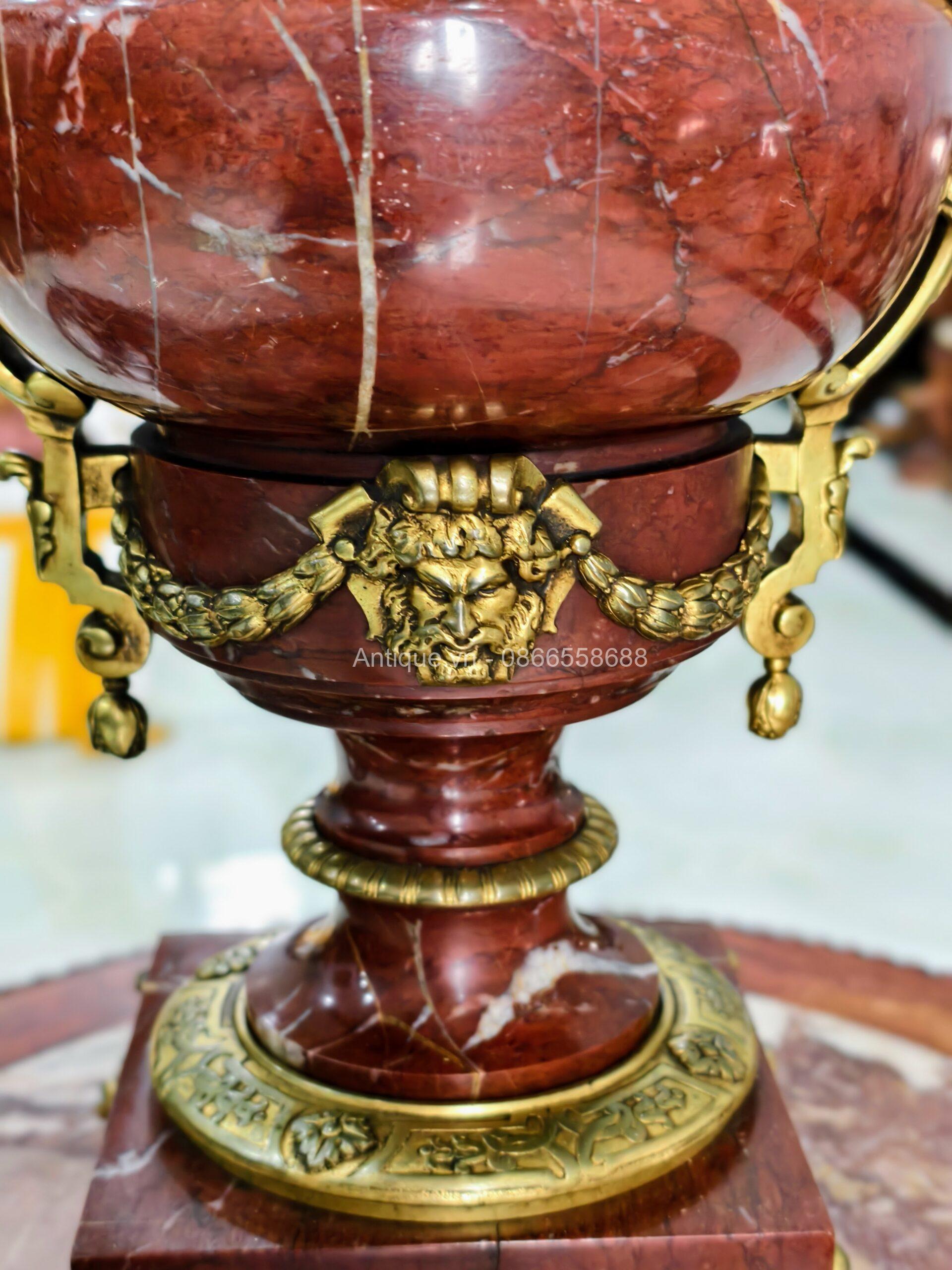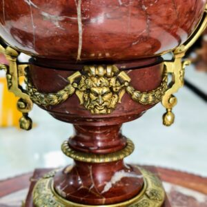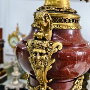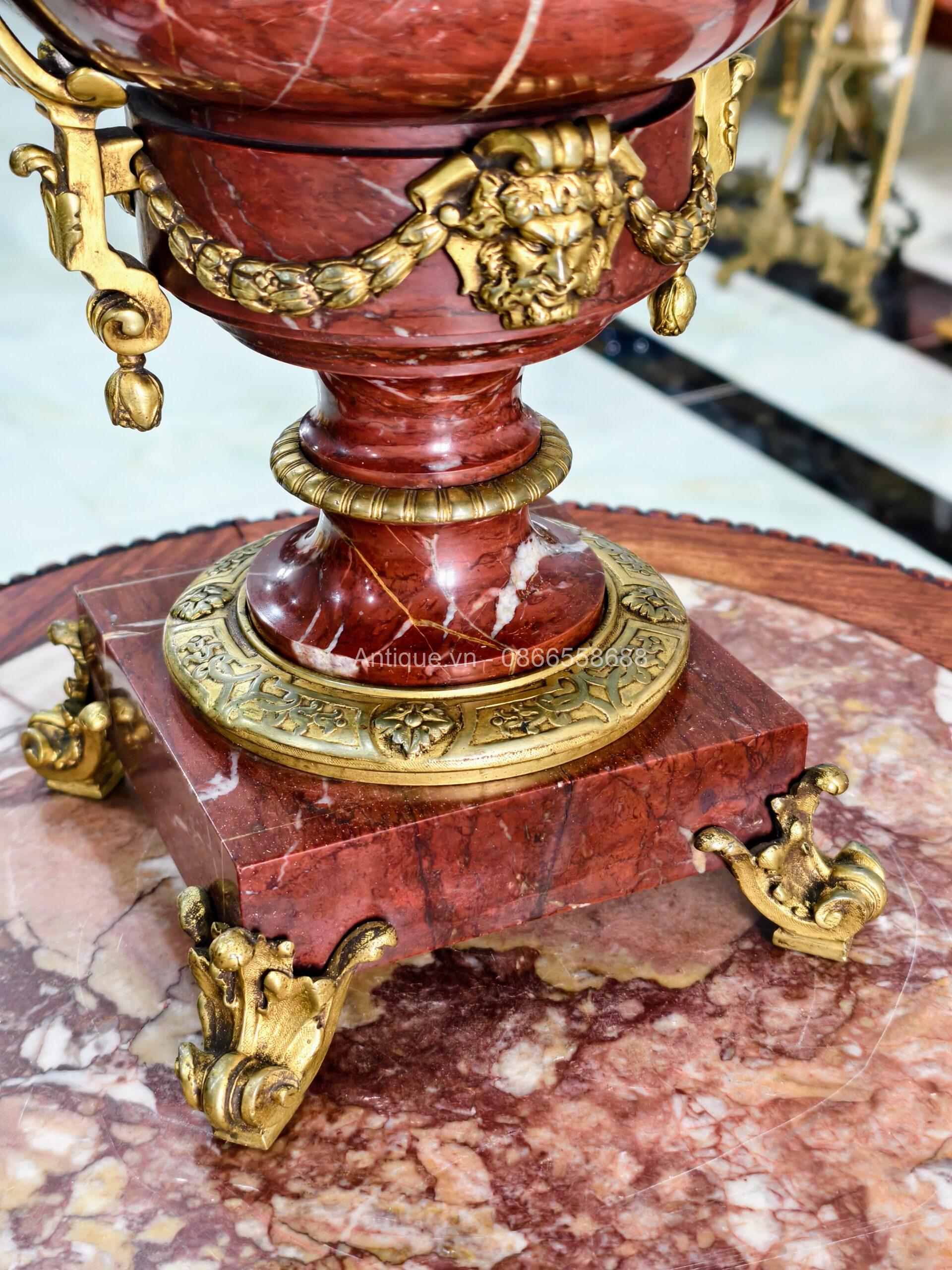 Đèn dầu Pháp, thân đèn bằng đá đỏ rất đẹp, kết hợp với các chi tiết đồng tinh xảo.