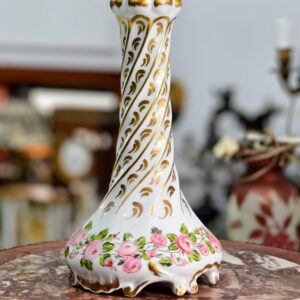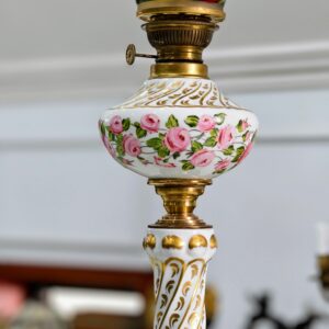 Đèn dầu Pháp, toàn thân đèn bằng sứ, được sản xuất tại vùng Limoges, Pháp, thủ phủ của ngành công nghiệp sứ cao cấp thế giới. Nhà sản xuất A. Giraud & Cie đã vẽ và hoàn thiện tác phẩm này.