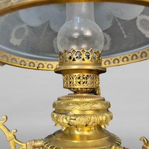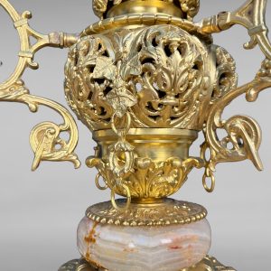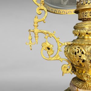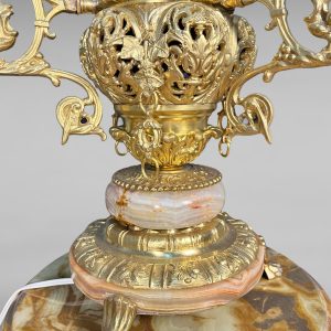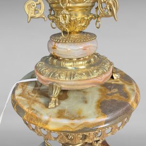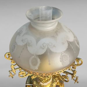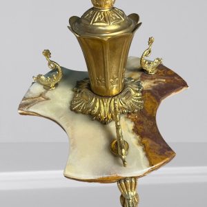 Đèn cây điện, xuất xứ Pháp, thân đèn là sự kết hợp giữa các chi tiết đá và đồng cực kỳ sắc nét tinh xảo.