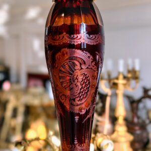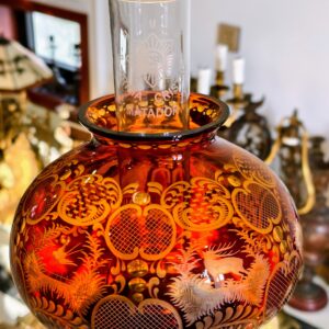 Đèn pha lê điện, toàn thân bằng pha lê các họa tiết, chim, tuần lộc và hoa lá được mài thủ công cực kỳ tinh xảo, kết hợp một số chi tiết bằng đồng.