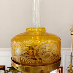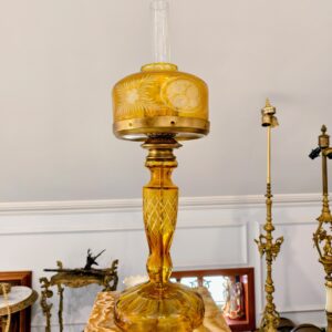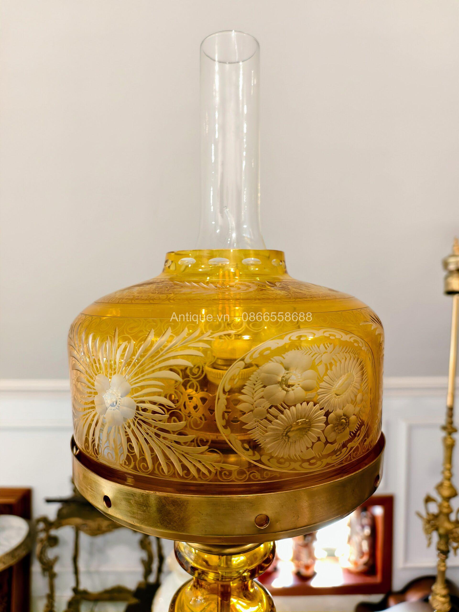 Đèn pha lê điện, toàn thân bằng pha lê các họa tiết, chim, tuần lộc và hoa lá được mài thủ công cực kỳ tinh xảo, kết hợp một số chi tiết bằng đồng.