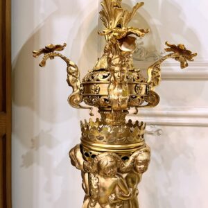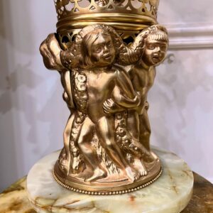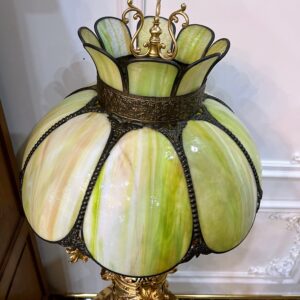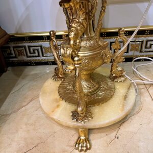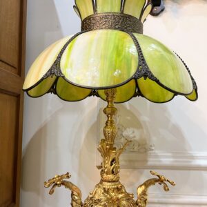 Đèn tiffani, xuất xứ Pháp. Toàn thân đèn bằng đồng với các chi tiết cực kỳ tinh xảo. Đôn đá cẩm thạch kết hợp với chao đá cổ tạo nên một chiếc đèn hoàn hảo.