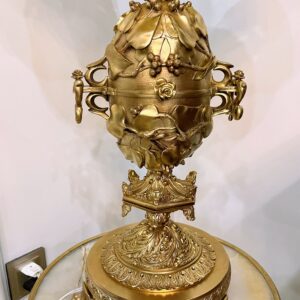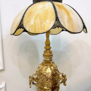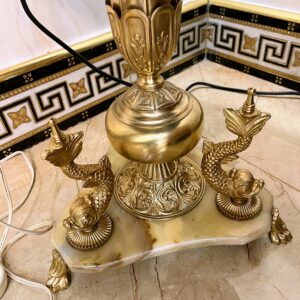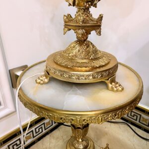 Đèn tiffani, xuất xứ Pháp. Toàn thân đèn bằng đồng với các chi tiết cực kỳ tinh xảo. Đôn đá cẩm thạch kết hợp với chao đá cổ tạo nên một chiếc đèn hoàn hảo.