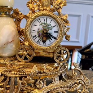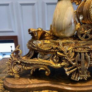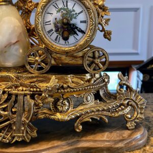 Đồng hồ để bàn đế đá kết hợp với đèn tiffani, tạo nên một tác phẩm độc đáo.