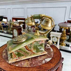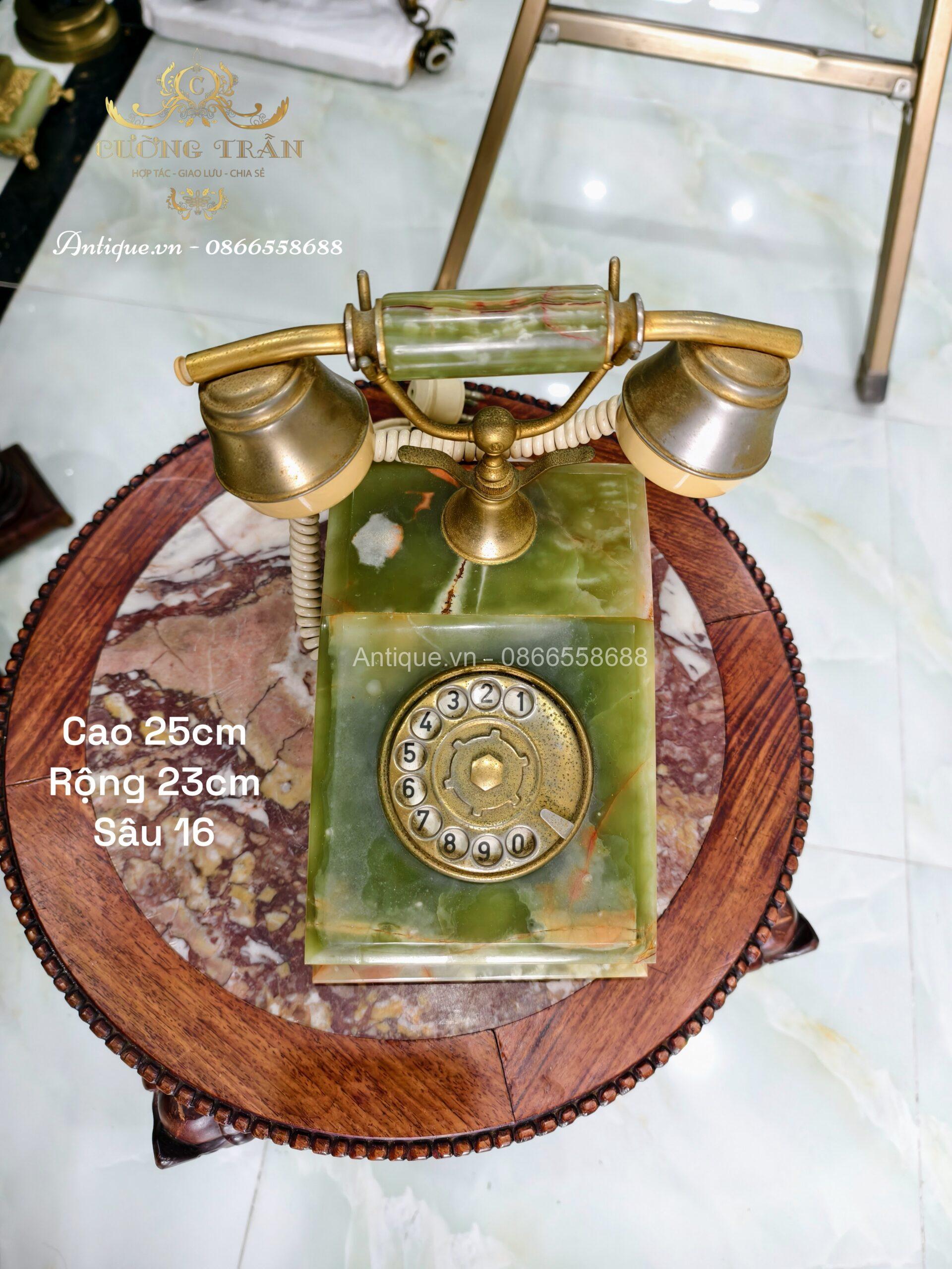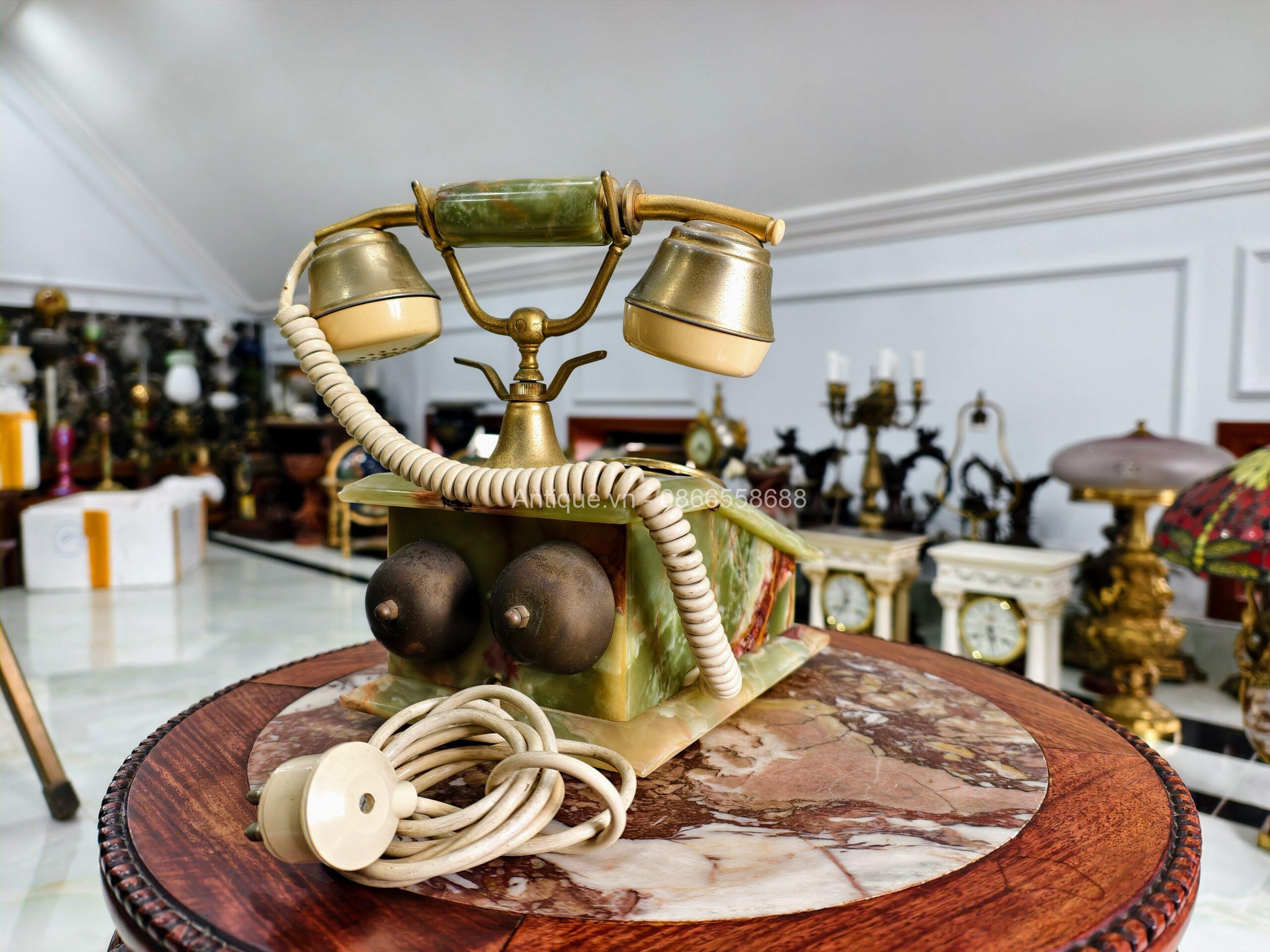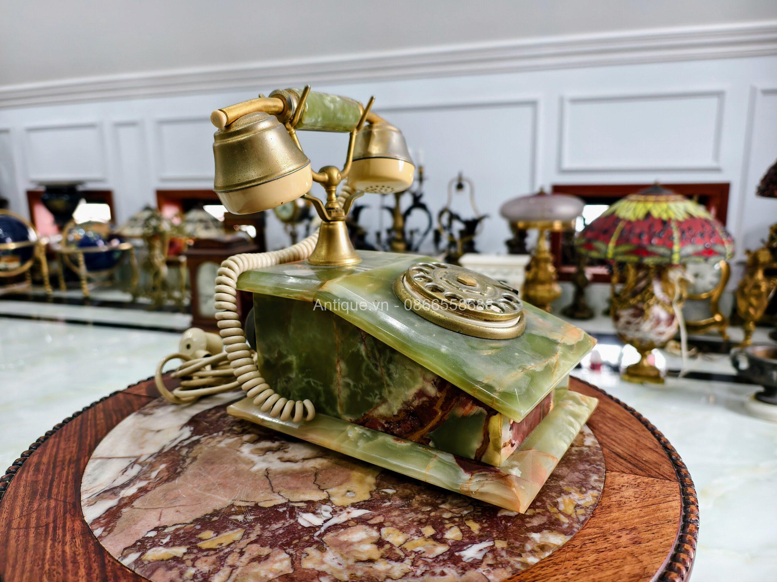 Điện thoại đá, xuất xứ Pháp. Thân điện thoại được kết hợp giữa đồng và đá cẩm thạch xanh rất đẹp và sang trọng.