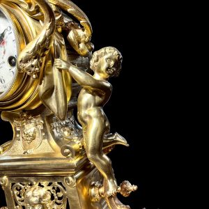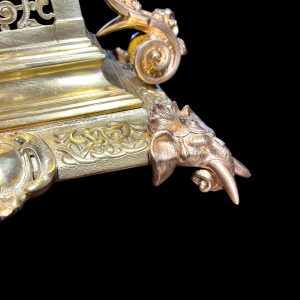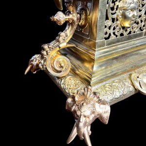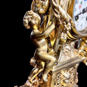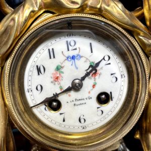 Đồng hồ để bàn, xuất xứ Pháp. Toàn thân bằng đồng đúc với các chi tiết cực kỳ mềm mại tinh xảo.
