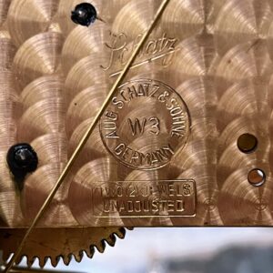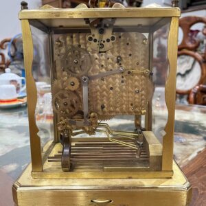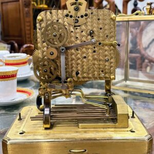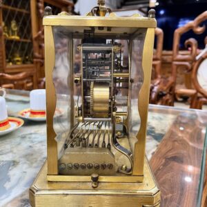 Đồng hồ để bàn, xuất xứ Đức, toàn bộ thân và máy đều bằng đồng. Máy tuần, 8 gông 8 búa, 30 phút điểm chuông 1 lần. Chơi 3 bản nhạc ST.Mich, Whittingt, Wesminster có tắt chuông.