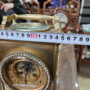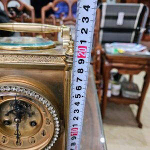 Đồng hồ để bàn, xuất xứ Pháp. Toàn bộ phần thân bằng đồng, với phần mặt trước được khảm 60 viên pha lê được cắt kim cương cực kỳ đẹp và sang trọng.