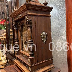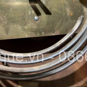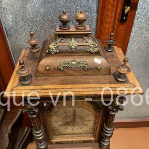Đồng hồ để bàn, xuất xứ Đức, được sản xuất khoảng cuối thế kỷ 19 đầu thế kỷ 20. Đồng hồ gông vòng kép, 15 phút điểm chuông 1 lần, điểm chuông có nhắc giờ.