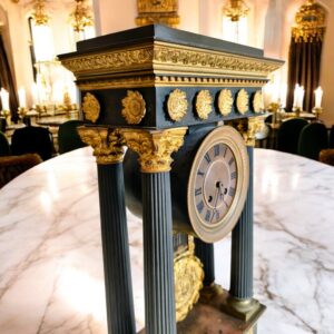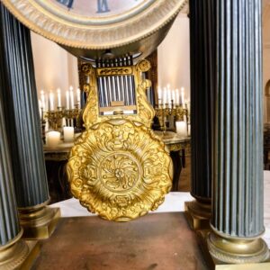 Đồng hồ khải hoàn môn, biểu tượng của sự chiến thắng, toàn thân bằng đồng, điểm các chi tiết đồng mạ vàng cực kỳ tinh tế. Đồng hồ chuông chén 30 phút điểm chuông 1 lần. quả lắc đồng họa tiết cực kỳ sắc nét tinh xảo.