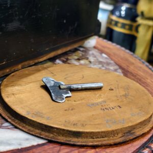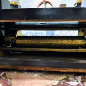 Bên dưới là hộp nhạc trẩm cầm độc đáo. Đồng hồ được đặt làm quà tặng năm 1823. Vẫn còn chữ viết tay trên đồng hồ, đã hơn 200 năm vẫn giữ được vẻ ngoài hoàn hảo, chỉ trầy xước nhẹ.