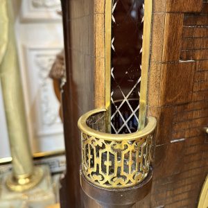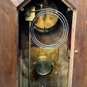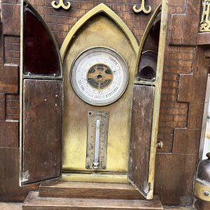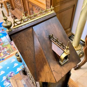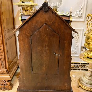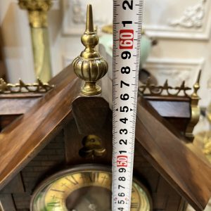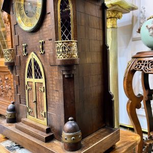 Một siêu phẩm trên 100 năm tuổi, như một ngôi nhà thờ với chiếc đồng hồ ở chính giữa. Thân đồng hồ bằng gỗ kết hợp các chi tiết đồng cực kỳ tinh xảo, tạo nên một chiếc đồng hồ nhà thờ tuyệt vời.