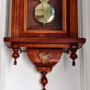 Đồng hồ treo tường, xuất xứ Đức, vỏ gỗ sồi, với các họa tiết tinh tế.