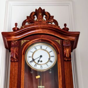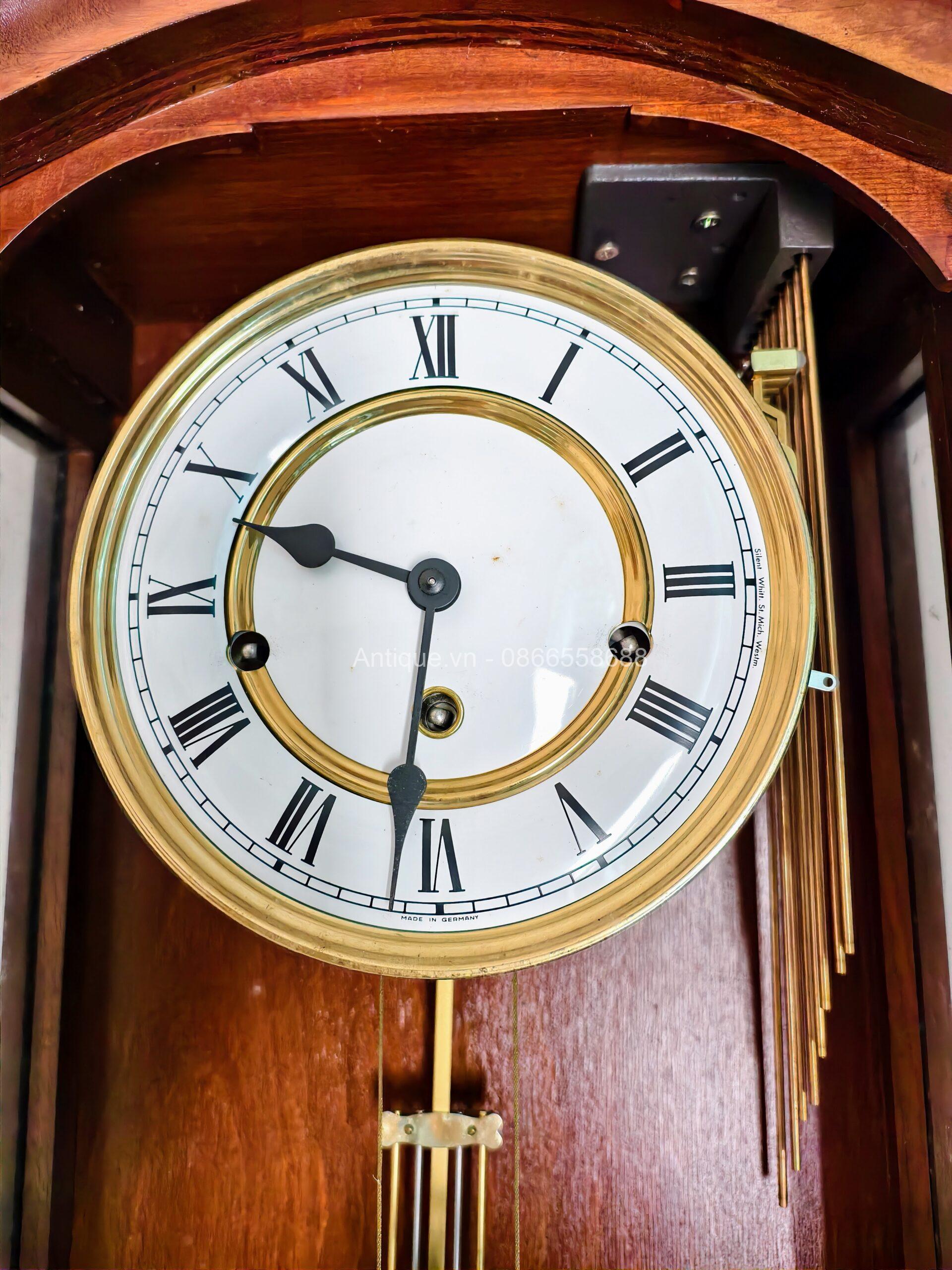 Đồng hồ treo tường, xuất xứ Đức, vỏ gỗ sồi, với các họa tiết tinh tế.